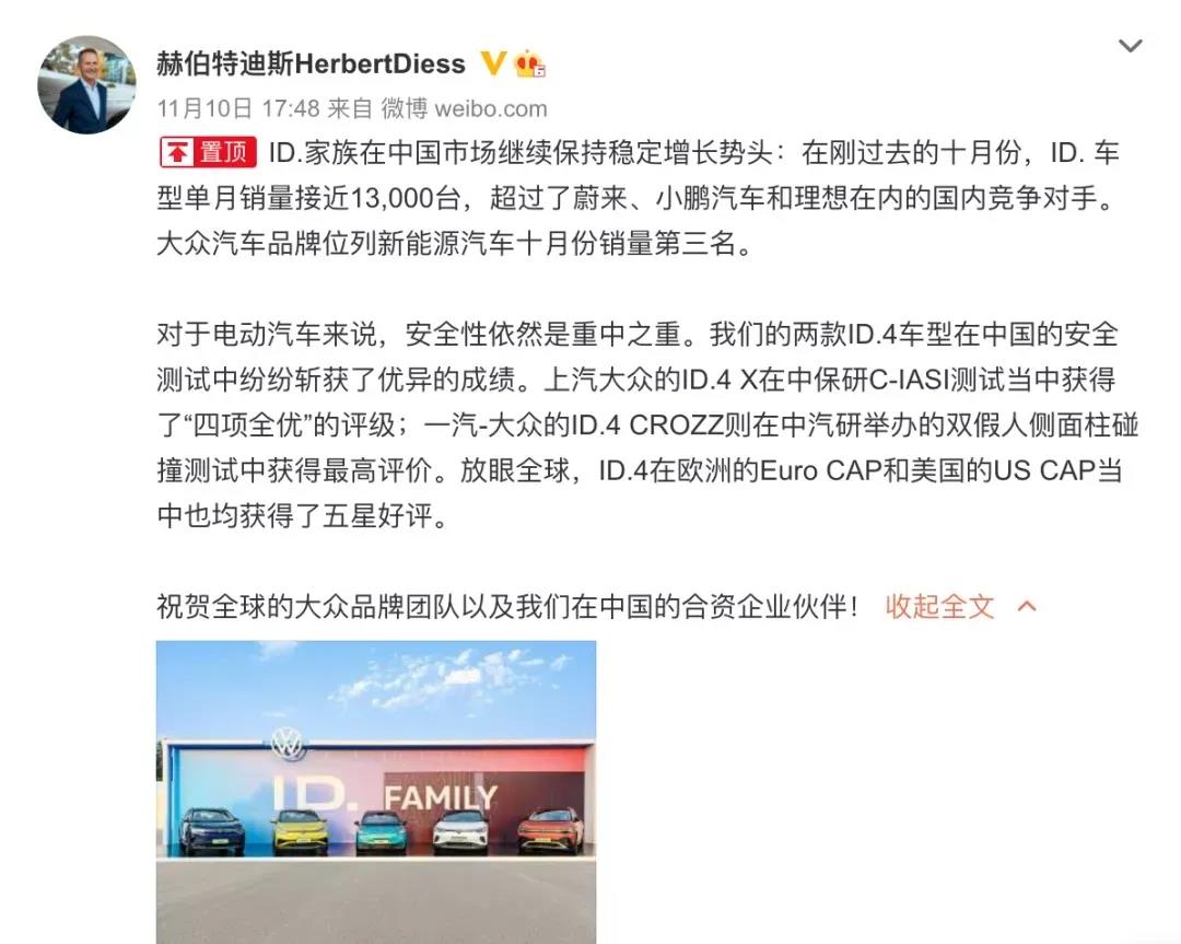 據(jù)了解,大眾旗下的德國工廠有茨維考工廠和德累斯頓工廠。而茨維考工廠主要負(fù)責(zé)生產(chǎn)大眾ID.3、ID.4、奧迪Q4 e-tron和Cupra Born等車型。值得注意的是,早幾日,大眾汽車集團迪斯在社交平臺發(fā)文表示,ID.家族在中國市場繼續(xù)保持穩(wěn)定增長勢頭,十月ID.車型單月銷量為12376臺,超過蔚來、小鵬汽車和理想等國內(nèi)競爭對手。不能看出此次停產(chǎn),也將導(dǎo)致這些車輛供應(yīng)在短時間內(nèi)受到限制。
