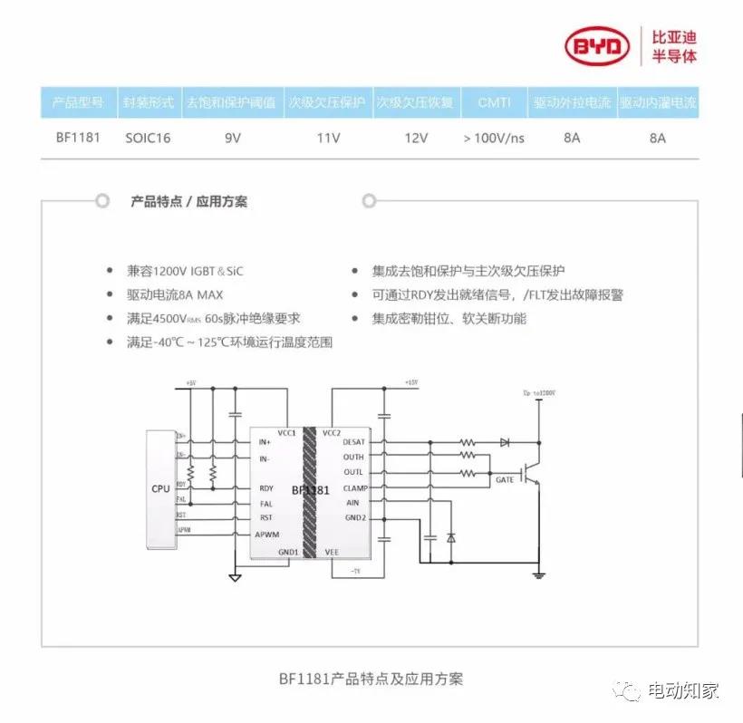 來自電動家消息,12月14日,比亞迪半導體在先前研發(fā)成果的基礎上,成功自主研制并量產(chǎn)1200V功率器件驅動芯片BF1181,今年12月大規(guī)模生產(chǎn)并向各大廠商供貨。