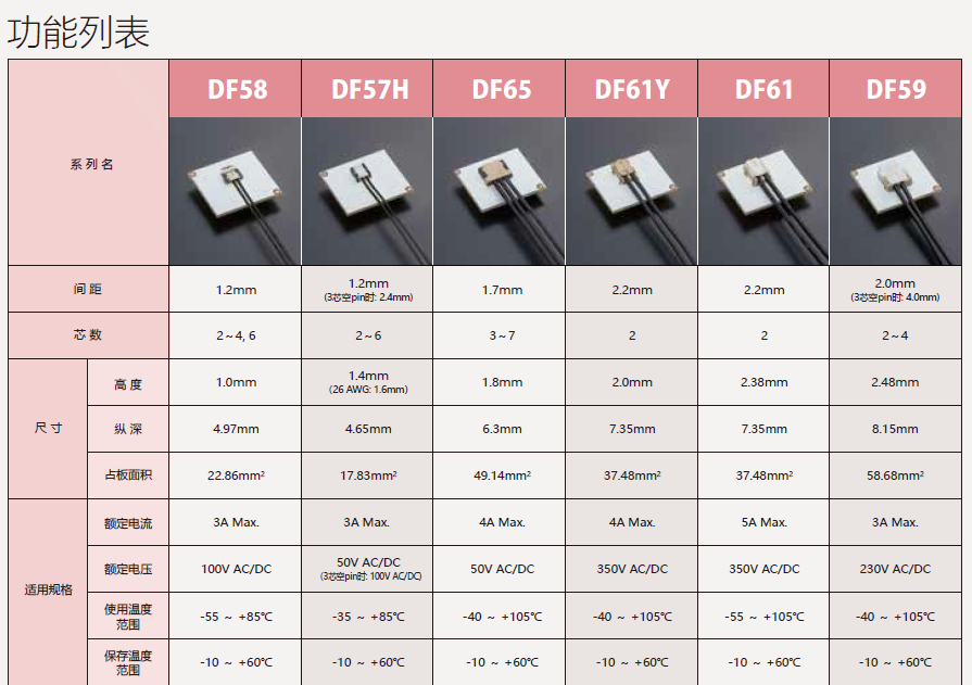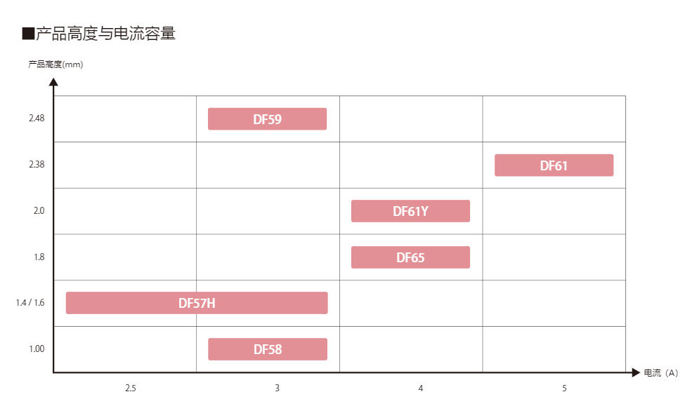 該連接器實現(xiàn)了大電流、省空間,高度為2.0mm。對比DF61,有著更為低薄的構造。小型緊湊,同時支持大電流。
