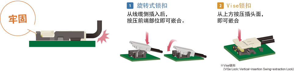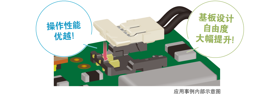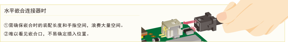 垂直嵌合不影響其他元器件,有效節(jié)省空間,提高基板設計自由度。采用從上向下的嵌合方式,易于確認嵌合口,從而更好地確定插